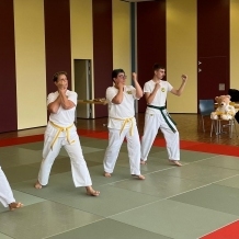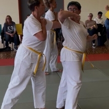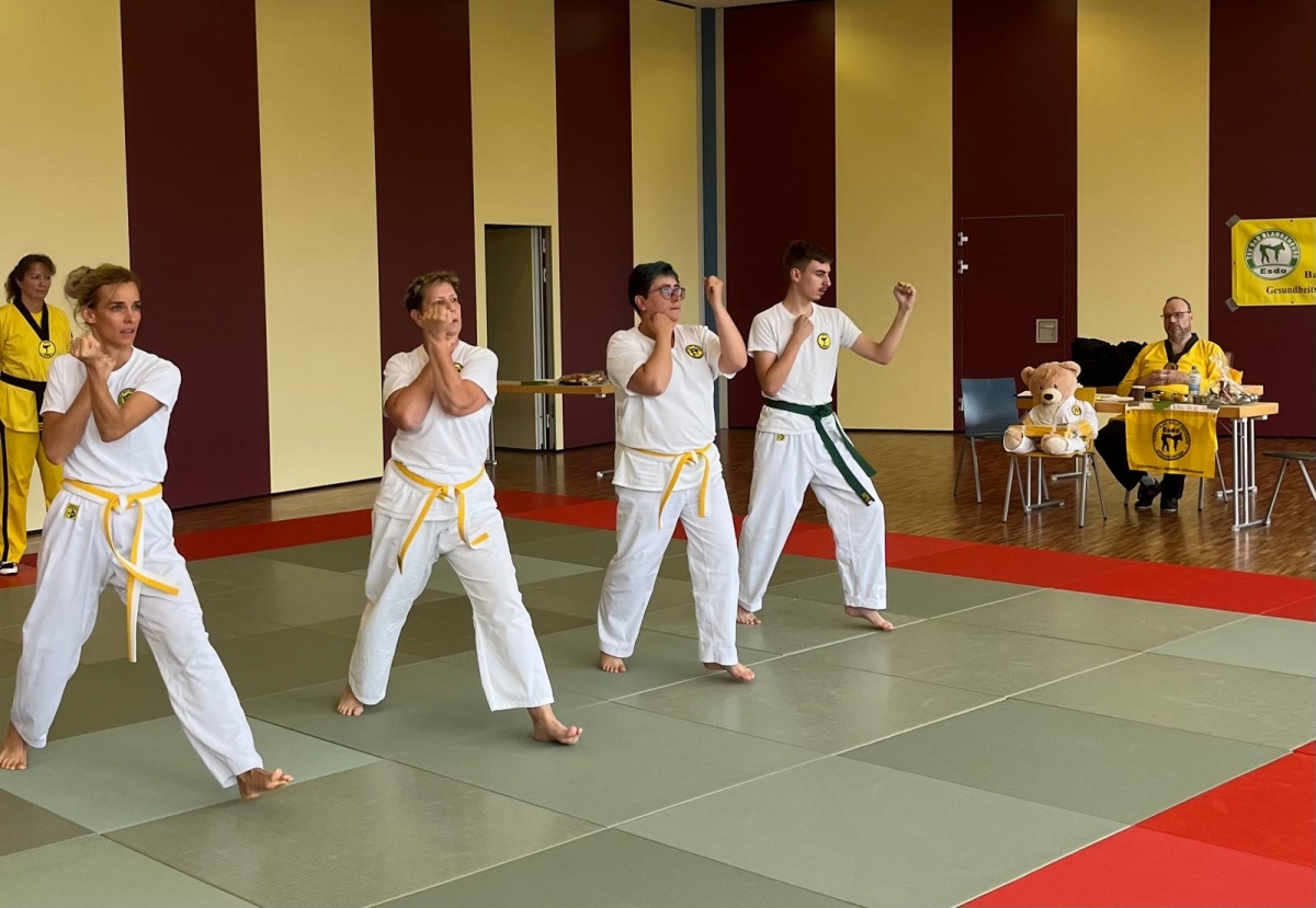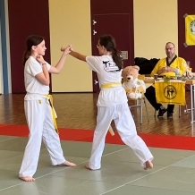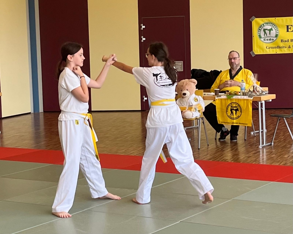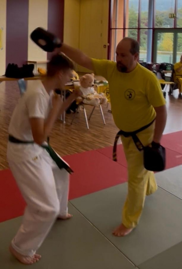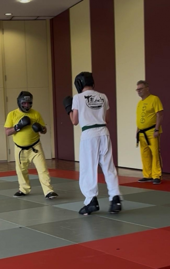 ![]() ![]() ![]() Toll gemacht - herzlichen Glückwunsch! Am Samstag, 27. September 2025, hatten unsere Sportler die Möglichkeit, vor unserem Esdo-Bundestrainer Kunibert Back ihre Gürtelprüfung abzulegen. Alle haben die Prüfung mit guten und sehr guten Leistungen bestanden: Wir gratulieren herzlich - Paskal und Ulrike zum weiß-gelben Gürtel - Hailey, Marie, Nancy, Silke und Catharina zum gelben Gürtel - Tom zum grün-blauen Gürtel Weiter so, wir sind sehr stolz auf Euch |